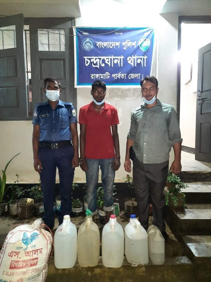 রাংগামাটি জেলার চন্দ্রঘোনা থানার বিশেষ অভিযানে ১০২ লিটার দেশীয় তৈরি চোলাই মদ সহ ১ জনকে আটক করা হয়। ঐ আটককৃত ব্যাক্তির নাম ইমরান হোসেন আরমান নামে পরিচয় বলে জানা যায়। সে চট্টগ্রাম জেলার হাটহাজারি উপজেলার বাসিন্দা জামশেদ আহমেদ এর ছেলে।