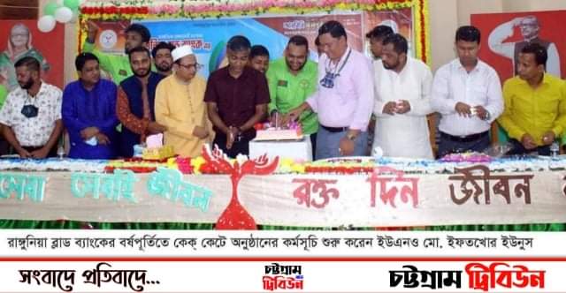 রাঙ্গুনিয়ার স্বনামধন্য স্বেচ্ছাসেবী সংগঠন “রাঙ্গুনিয়া ব্লাড ব্যাংক’র চতুর্থ বর্ষপূর্তি বর্ণাঢ্য আয়োজনে উদযাপিত হয়েছে। এই উপলক্ষে শুক্রবার (১২ নভেম্বর) বিকেলে উপজেলা অডিটোরিয়ামে কেক কাটা ,গুনীজন সম্মাননা, স্বেচ্ছাসেবী সম্মাননা প্রদান ও আলোচনা সভা অনুষ্ঠিত হয়েছে।