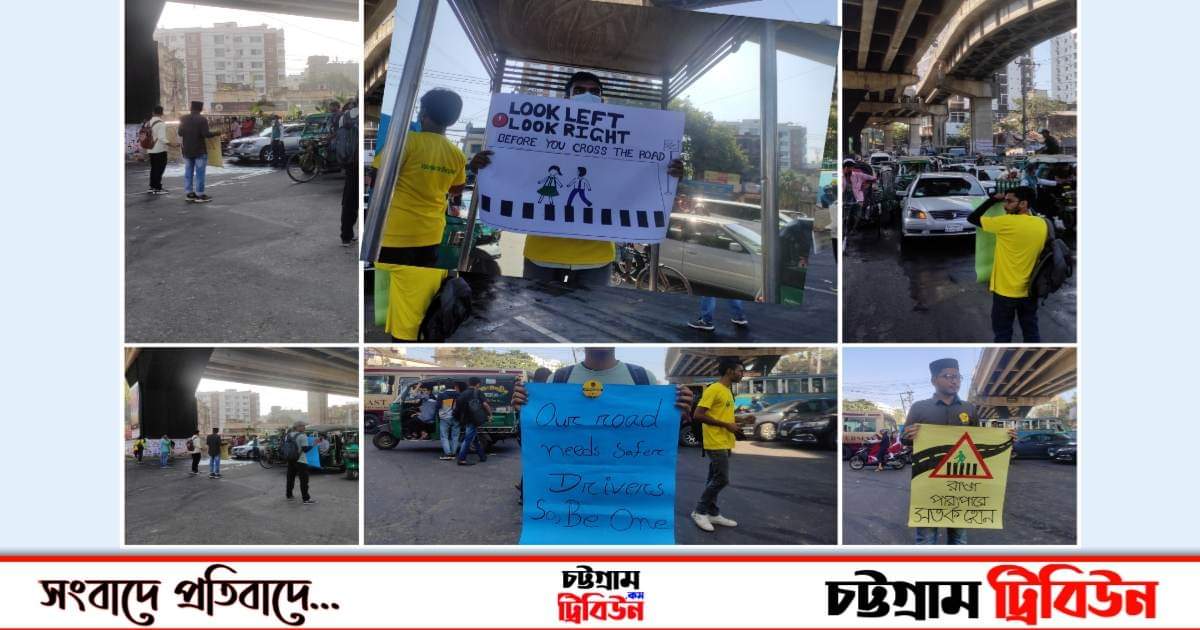 সময় তখন বেলা ১২ টার কাছাকাছি নগরীর ২ নম্বর গেইট এলাকায় Youth Wing Of Jaago Foundation কয়েকজন সেচ্ছাসেবী তরুণ তরুণীদের দেখা যায় হাতে ফেস্টুন নিয়ে দাড়িয়ে আছে।মনে হচ্ছে ওরা একাই একশ জনের সমান। প্রচার করে যাচ্ছে বাংলাদেশের ট্রাফিক আইন মেনে চলার চেষ্টা করে যাচ্ছে রাস্তা পারাপারের সময় সর্তক হওয়ার।