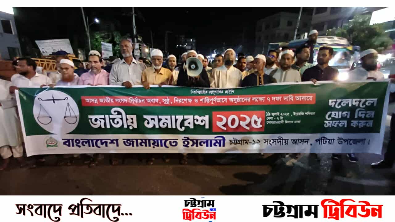 বাংলাদেশ জামায়াতে ইসলামীর উদ্যোগে আগামী ১৯শে জুলাই শনিবার ঐতিহাসিক সোহরাওয়ার্দী উদ্যানে অনুষ্ঠিতব্য জাতীয় সমাবেশ সফল করার লক্ষ্যে গতকাল (শুক্রবার) সন্ধ্যা ৭টা ১৫ মিনিটে পটিয়া উপজেলা শাখা একটি বিশাল স্বাগত মিছিলের আয়োজন করে।